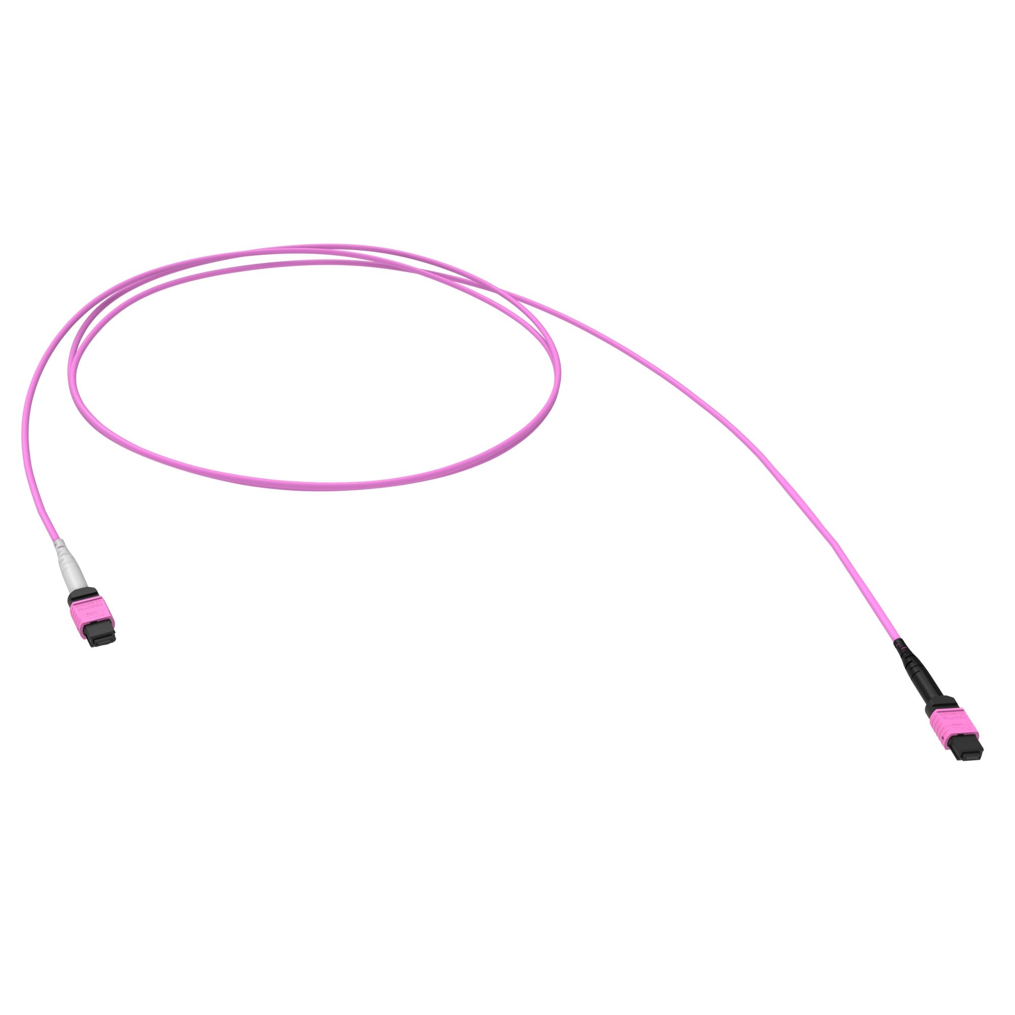 Оптический соединительный шнур 16 ОВ, 50/125 OM4, 1xMTP(16)f PC/1xMTP(16)f APC, тип В, 20 м