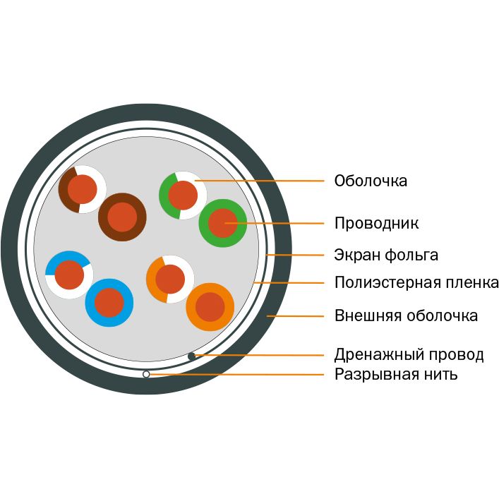 ITK Витая пара F/UTP кат.6 4х2х23AWG solid PVC серый (305м)