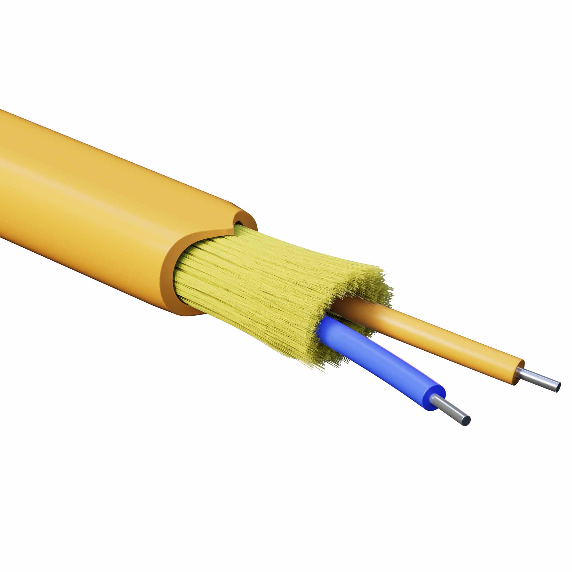 Кабель волоконно-оптический, распределительный, арамидные упрочняющие нити, для внутренней прокладки, нг(A)-HFLTx, 2 ОВ, категория OM2 (G.651.1) плотный буфер, 0,4 кН, барабан 2000 м