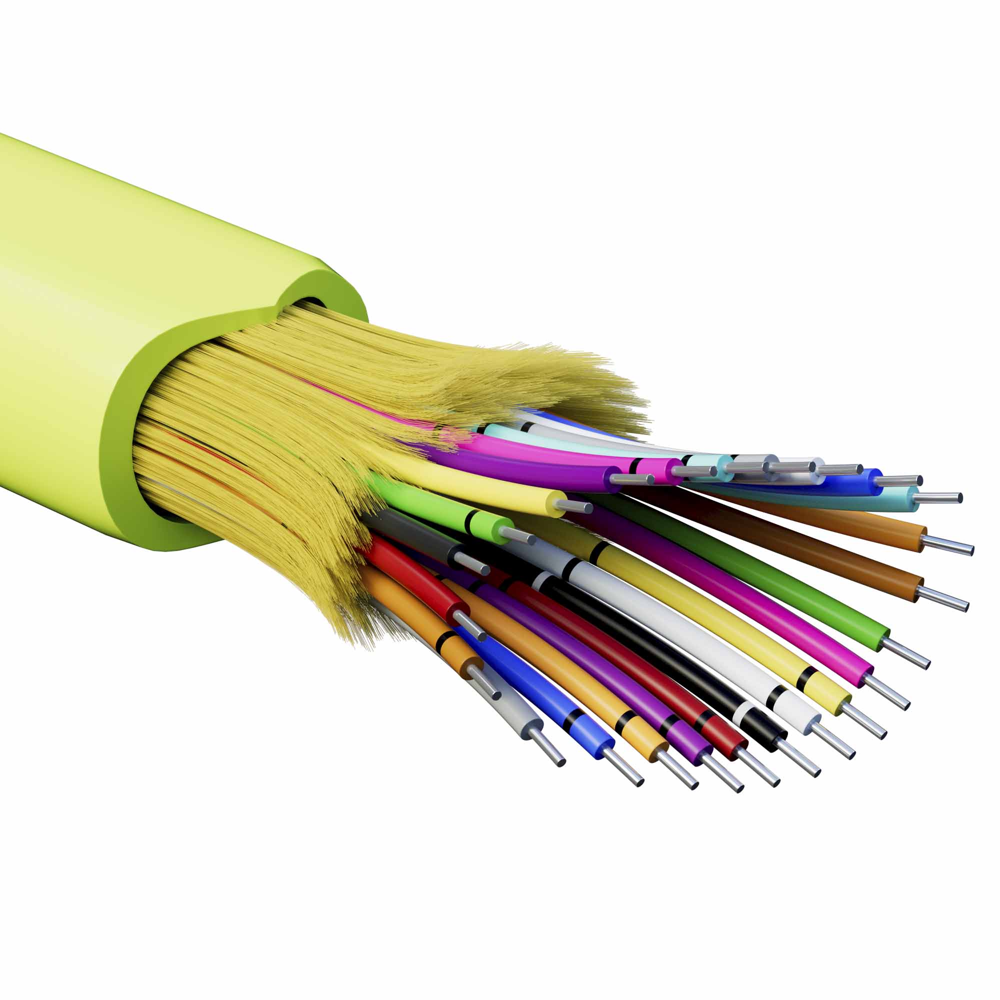 Кабель волоконно-оптический, распределительный, арамидные упрочняющие нити, для внутренней прокладки, нг(А)-HF, 24 ОВ, категория OM5 (G.651.1) плотный буфер, 0,4 кН, барабан 500 м