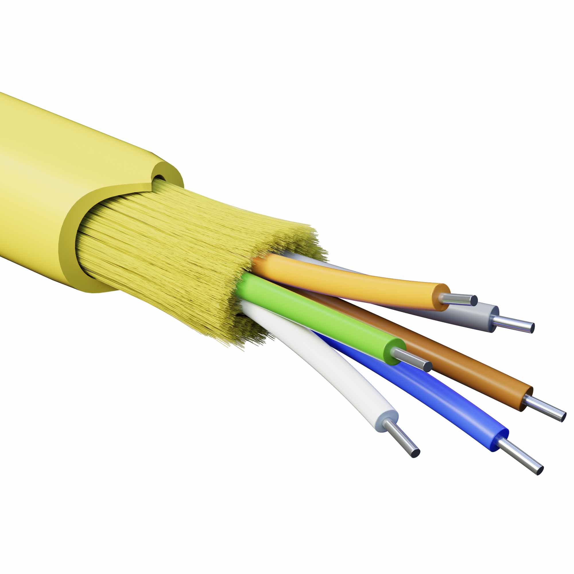 Кабель волоконно-оптический, распределительный, арамидные упрочняющие нити, для внутренней прокладки, нг(A)-HFLTx, 8 ОВ, категорияOS2 (G.652.D) плотный буфер, 0,4 кН, барабан 500 м