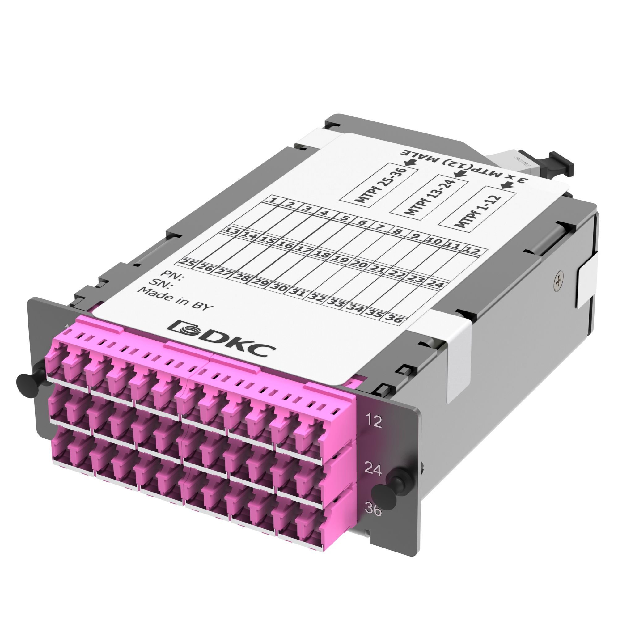 Претерминированная кассета 36 ОВ 50/125 OM4, 3xMTP(12)f/18xLC Duplex (с интегрированными шторками), 1 HU