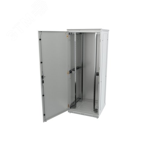 Шкаф напольный телекоммуникационный предназначен для размещения активного и пассивного телекоммуникационного оборудования. Изделие выполнено в системе несущих конструкций серии 482.6 мм (19''). Климатическое исполнение УХЛ4, предназначено для эксплуатации в закрытых помещениях. Имеет полностью разборную конструкцию и состоит из основания, крыши и двух сварных рам, соединенных комплектом швеллеров. Поставляется в трех транспортных местах. За счет элементов крепления каркас шкафа имеет повышенную жесткость. Распределенная вертикальная нагрузка до 600 кг. Стандартно шкаф комплектуется передней дверью, боковыми и задней стенками с замками. Предусмотрены кабельные вводы в верхней и нижней частях шкафа. В основание или крышу шкафа возможна установка вентиляторных модулей. Вертикальные направляющие регулируются по глубине. Система заземления шкафа входит в стандартную комплектацию.