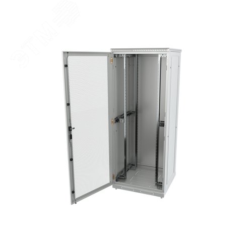 Шкаф напольный телекоммуникационный предназначен для размещения активного и пассивного телекоммуникационного оборудования. Изделие выполнено в системе несущих конструкций серии 482.6 мм (19''). Климатическое исполнение УХЛ4, предназначено для эксплуатации в закрытых помещениях. Имеет полностью разборную конструкцию и состоит из основания, крыши и двух сварных рам, соединенных комплектом швеллеров. Поставляется в трех транспортных местах. За счет элементов крепления каркас шкафа имеет повышенную жесткость. Распределенная вертикальная нагрузка до 600 кг. Стандартно шкаф комплектуется передней дверью, боковыми и задней стенками с замками. Предусмотрены кабельные вводы в верхней и нижней частях шкафа. В основание или крышу шкафа возможна установка вентиляторных модулей. Вертикальные направляющие регулируются по глубине. Система заземления шкафа входит в стандартную комплектацию.