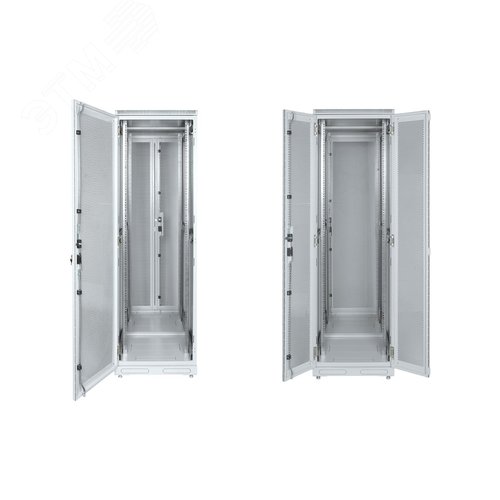Предназначен для размещения активного и пассивного серверного оборудования. Изделие выполнено в системе несущих конструкций серии 482.6 мм (19''). Климатическое исполнение УХЛ4 (предназначено для эксплуатации в закрытых помещениях). Имеет полностью разборную конструкцию и состоит из основания, крыши и трех сварных рам, соединенных комплектом швеллеров. Поставляется в трех транспортных местах. За счет элементов крепления каркас шкафа имеет повышенную жесткость. Распределенная вертикальная нагрузка до 1000 кг. Стандартно шкаф комплектуется- передней и задней дверями, боковыми стенками с замками. Предусмотрены кабельные вводы в верхней и нижней частях шкафа. В основание или крышу шкафа возможна установка вентиляторных модулей. Вертикальные направляющие регулируются по глубине. Система заземления шкафа входит в стандартную комплектацию.