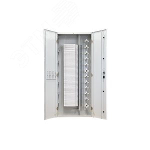 Предназначен для ввода большого кол-ва оптич. кабелей (нескольких десятков и более), монтажа и кросс-коммутации оптич. волокон, организации входящих-исходящих и коммутационных кабелей (патчкордов). Может применяться в центрах коммутации волоконно-оптических сетей операторов связи (АТС, ЦУС), в сетях кабельного ТВ, в сетях доступа с идеологией 'волокно-до-дома' (микрорайона, рабочего стола, и т.д.) (FTTx), в пассивных оптич. сетях (PON), в кроссовых помещениях крупных бизнес-центров и пр. Использование целесообразно при концентрации в одной аппаратной большого кол-ва оптич. портов (не менее 200). Макс. ёмкость составляет 1728 портов SC или 3456 портов LC. Отличительная особенность по сравнению с трад. решениями на базе стандарт. шкафов и стоек 19'' - это доп. функциональность применительно к вводу оптических кабелей, монтажу ОВ и кросс-коммутации оптических портов патчкордами.