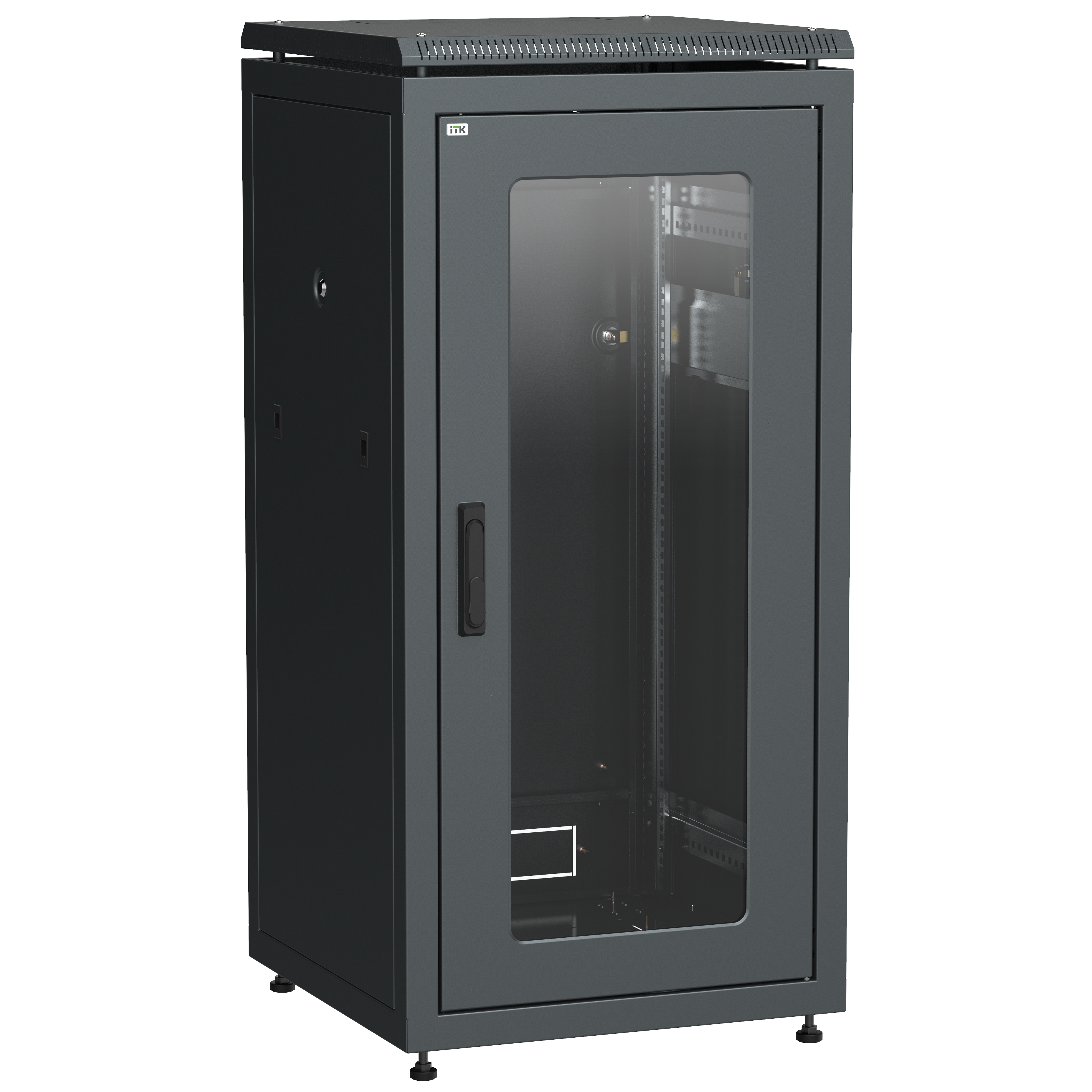 ITK LINEA N Шкаф сетевой 19" 28U 600х800мм стеклянная передняя дверь черный