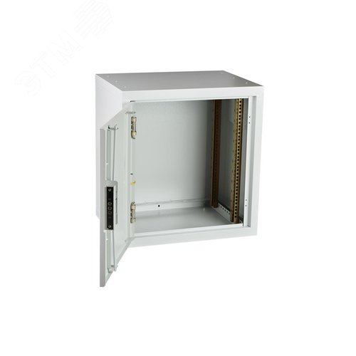 Предназначен для размещения и защиты от несанкционированного доступа активного и пассивного телекоммуникационного оборудования. Дверь шкафа усилена двумя швеллерами и запирается надежным ригельным замком с трехточечной фиксацией. Угол открывания двери - 120 градусов, обеспечивает хороший доступ для монтажа и коммутации оборудования. Шкаф комплектуется двумя парами вертикальных (юнитовых) направляющих, регулируемых по глубине. Для вентиляции оборудования предусмотрена перфорация в боковых стенках шкафа. Отверстия изнутри защищены металлическими перфорированными панелями. В основании шкафа предусмотрены защищенные кабельные вводы и система заземления. Шкаф крепится к стене анкерными болтами, которые входят в комплект поставки.
