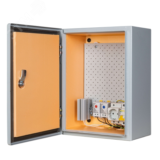 "Mastermann-2УТП (Ver. 2.0) Климатический навесной шкаф с защитой от ""холодного"" пуска предназначен для монтажа электронного оборудования, требующего защиты от воздействия низких температур, пыли, влаги, атмосферных осадков, нежелательного доступа и других неблагоприятных факторов. Цельносварной корпус из 1,5 мм стали марки Ст3. Покраска порошковая в цвет ral 7035 (серый). Термошкаф оснащен системой автоматического поддержания заданной температуры и относительной влажности, обеспечивающей безопасную работу размещенного в нём оборудования при температуре окружающего воздуха от -55С до +50С со степенью защиты IP66."