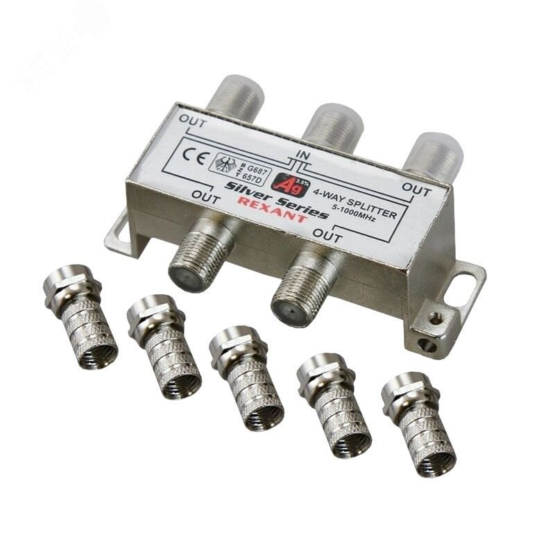 Телевизионный делитель или сплиттер предназначен для телевизионных систем и используется в домах и квартирах, где требуется подключить несколько телевизионных аппаратов к одной антенне. Сплиттер распределяет поступающий на вход сигнал поровну на его выходы, что обеспечивает одинаково четкое изображение на всех подключенных устройствах. Он имеет четыре выхода для сигнала и подключается с помощью стандартных F-Разъемов. Делитель комплектуется необходимыми F-Разъемами. Пайка внутри делителя осуществляется с использованием серебренносодержащего припоя, что позволяет получить сигнал высокого качества и увеличить надежность. Делитель имеет надежный металлический корпус. Полная комплектация ТВ сплиттера (F-Разъемы в комплекте) позволяет удобно и быстро монтировать телевизионный кабель и подключать аппаратуру.