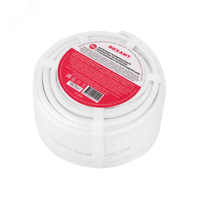 Набор с антенным телевиз. удлинителем ТВ 30м с F-разъемами и ТВ-переходниками, REXANT 06-3093