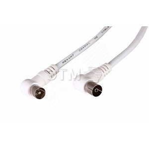 Шнур ТВ гнездо - ТВ штекер, угловой, длина 1,5 метра, белый,