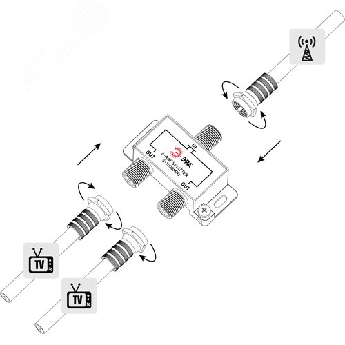 Делитель ТВ D-F-01 2 ответвления под F разъём 5-1000 МГц