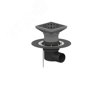 трап горизонтальный дворовый регулируемый тп-615h-э с выходным диаметром 110 мм, с прижимным фланцем, чугунной решеткой, мусоросборником и запахозапир