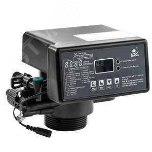 Блок управления автоматический по объему отфильтрованной воды реагентный для умягчителей. Предназначен для коммутации потоков воды внутри корпуса фильтра с зернистой загрузкой. Вход/выход - G1, дренаж - NPT3/4, солевая линия - G3/8, посадочный размер - 2,5''-8NPSM, диаметр трубы ДРС - 1,05''OD, максимальная производительность, м3/ч - 5, размер корпуса фильтра - 6-18'', протестирован на рабочее давление - 2-6 атм, рабочая температура - 4-38 градусов Цельсия, совместимость с загрузками - умягчающие, анионообменные и катионообменные смолы, все виды загрузок ''Экотар'', примечание - DF.