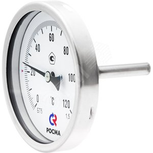 Термометр биметаллический коррозионностойкий осевой БТ-51.220 0-100С 1/2' длина штока 150мм кл.1.5