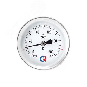 Прибор предназначен для измерения температуры жидкостей, пара и газов в отопительных и санитарных установках, в системах кондиционирования и вентиляции. Принцип действия прибора основан на зависимости деформации чувствительного элемента от измеряемой температуры. В качестве чувствительного элемента используется биметаллическая пружина. Она изготавливается из двух прочно соединенных металлических пластин, имеющих различные температурные коэффициенты линейного расширения. При изменении температуры пружина изгибается и вращает стрелку термометра. Один её конец закреплен внутри штока, а к другому присоединяется ось стрелки. Корпус прибора изготавливается из коррозионностойкой стали, шток - из нержавеющей стали.