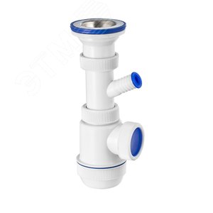 Сифон МИНИ ЭЛИТ для моек и раковин 1'1/2 х 40 мм с нержавеющей чашкой 70 мм и отводом для стиральной или посудомоечной машины