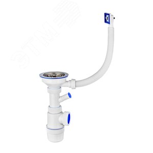 Сифон ЭЛИТ с нержавеющей чашкой D114 мм отводом для стиральной или посудомоечной машины и с переливом 3'1/2 - D40