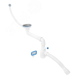 Сифон 2 в 1 для кухни 3 1/2'х40, со смещением (нержавеющая чашка, 2 перелива, с отведением для стиральной машинки) с гофротрубой 40х40/50
