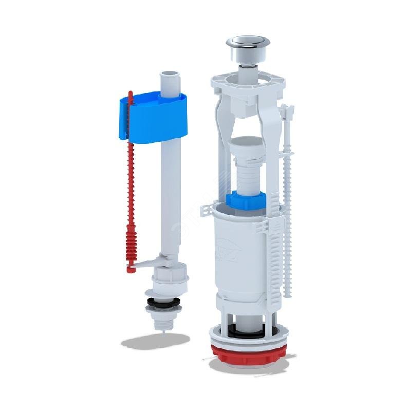 Набор для бачка унитаза с нижней подводкой 1/2' с пластиковым щтуцером кнопка металлизированная эконом