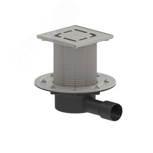 Трап горизонтальный регулируемый c прижимным фланцем ТП-510.1-3000 для внутренней канализации 50,40 мм, с решеткой из нержавеющей стали 15х15 см и гид