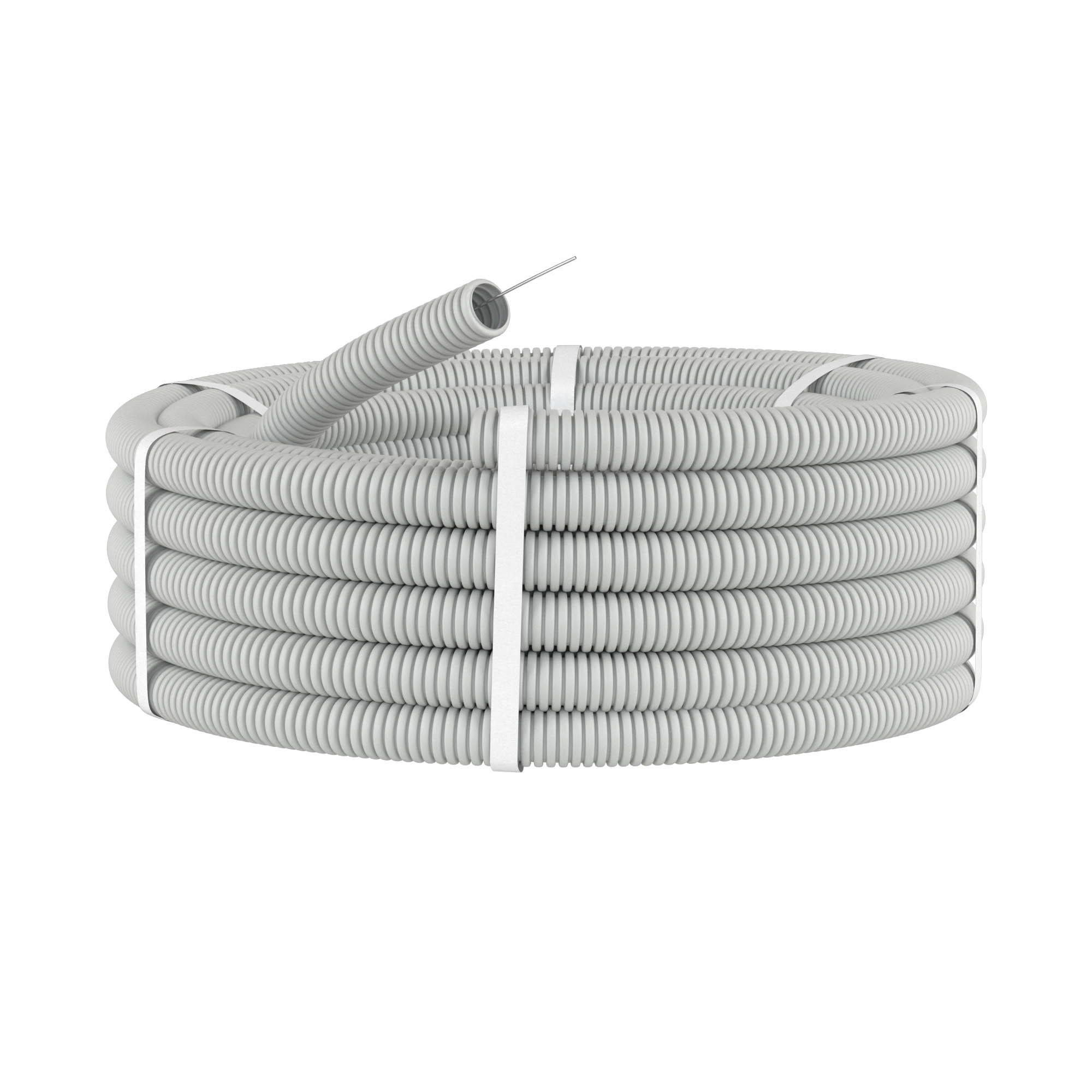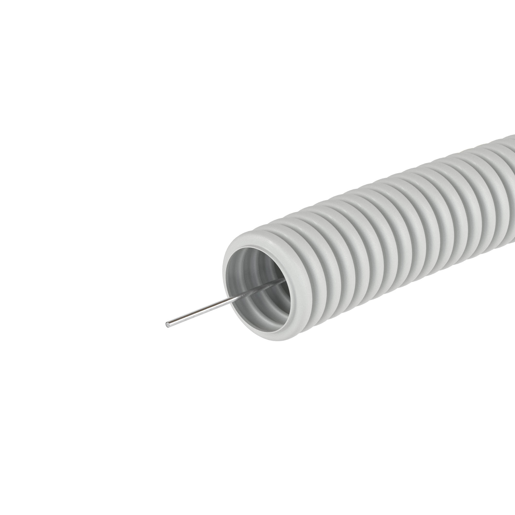 Труба ПВХ гибкая гофр. д.20мм, лёгкая с протяжкой, 25м, цвет серый