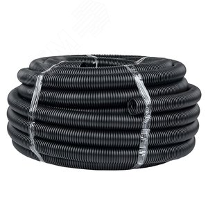 Труба ПНД гибкая гофрированная d50мм, тяжёлая с протяжкой, 20м, цвет черный PROxima