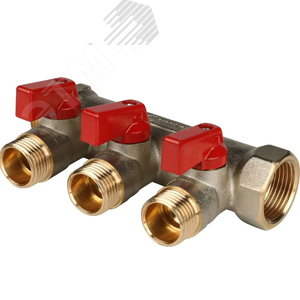 Коллектор с шаровыми кранами 3/4', 3 отвода 1/2' (красные ручки)