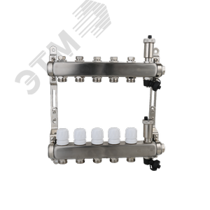Коллекторная группа с настроечными и регулировочными клапанами, автоматическими воздухоотводчиками дренажными клапанами нержавеющей стали 1' 5 х 3/4'