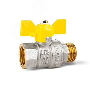 Кран шаровый латунный никелированный 11б27п Ду15 Ру40 (1/2') ВР/НР бабочка с биркой GAS