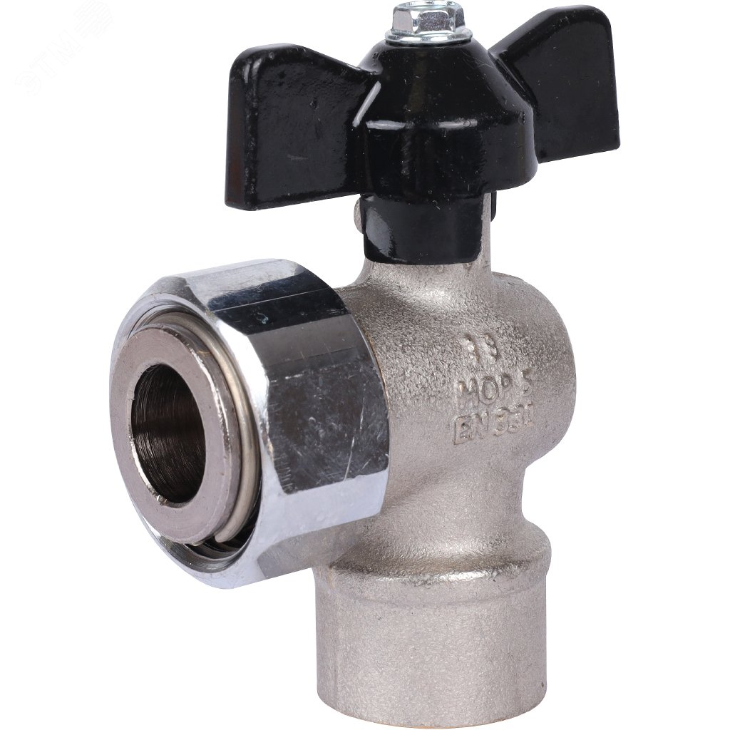 Кран шаровой с накидной гайкой угловой, ВР/накидная гайка, ручка бабочка 1/2x3/4 STOUT SVB-1010-001520