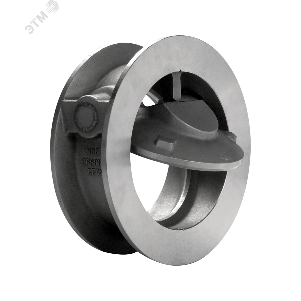 Обратный клапан RM, с поворотным диском (Orbinox, Испания) DN 40–900 (из нержавеющей стали). Невозвратный обратный клапан с уплотнением 'металл по металлу' и наклонным посадочным местом. Основные преимущества - малая строительная длина, минимальные потери давления, минимальное давление открытия, хорошая герметичность, быстродействие (наклонное посадочное место уменьшает рабочий ход запорного элемента), благодаря малому весу идеально подходит для монта-жа на подвесной трубопровод. Дополнительные опции (под заказ) - контрбалансир с гасителем гидроудара (демпфером) или без него - обычно используется на насосных станциях для уменьшения эффекта гидроудара. Применение данных систем требует предварительного изучения характеристик установки. Возвратная пружина — увеличивает скорость закрытия. Материалы - Возможно специсполнение из других материалов (AISI 317, 254 SMO, хастелой, титан и т. д. )