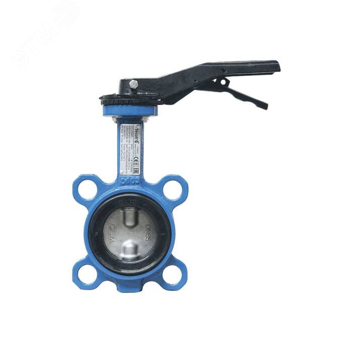 Затвор дисковый поворотный чугунный Tecfly Ду 100 Ру16 с рукояткой, диск нерж сталь, манжета EPDM